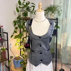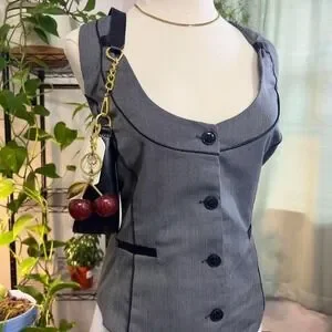 ✧ flattering sexy vest top with black buttons and trim. goth, punk, grunge, y2k, corpcore, office siren