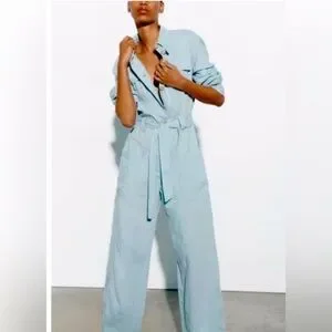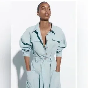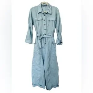 Zara Limited Edition Wide Linen Blend Cargo Jumpsuit. Size M