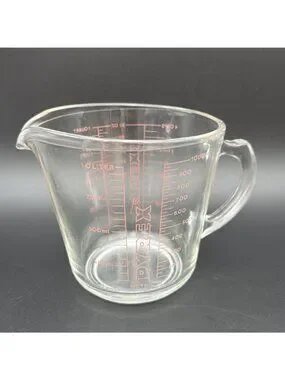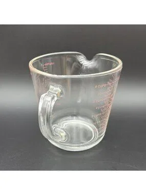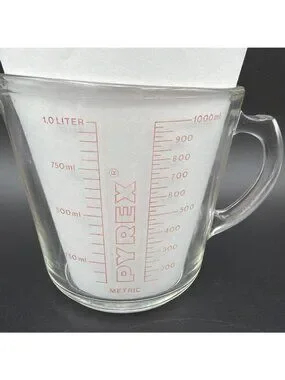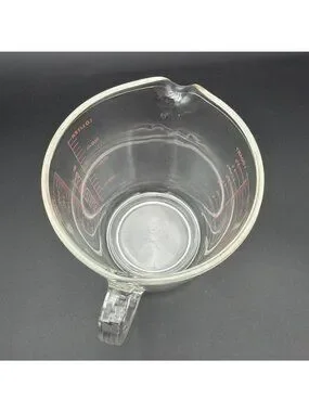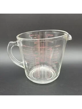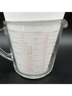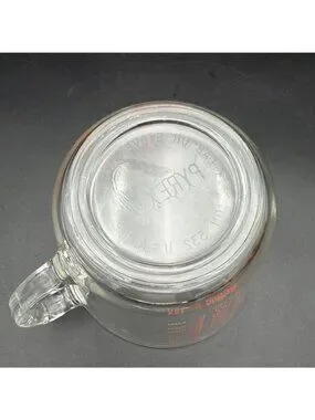 Vintage Pyrex Clear Glass 1 Quart Measuring Cup 532 D Handle Red Lettering
