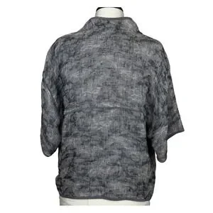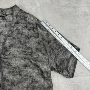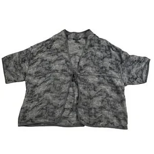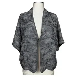 Eileen Fisher Jacket Womens Petite Large Gray Linen Silk Trim Kimono Tie Front