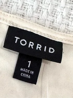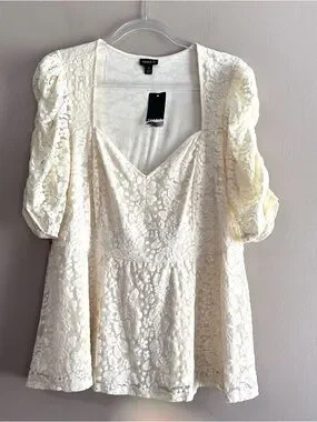 Torrid Ivory Stretch Lace Cinched Elbow Sleeve Peplum Top Womens 1X (14-16) NWT