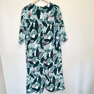 Rachel Zoe NWT Tropical Banana Leaf Pattern Open Front Semi Sheer Duster Kimono