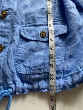 Talbots Light Blue Linen Drawstring Hem Jacket