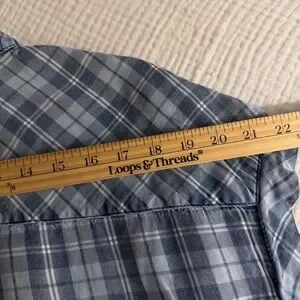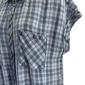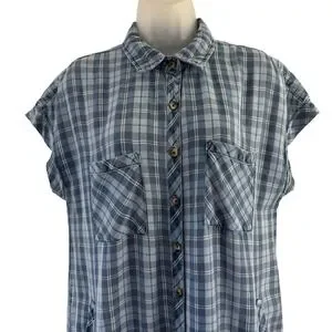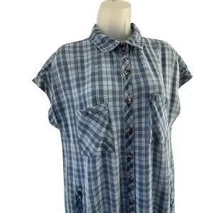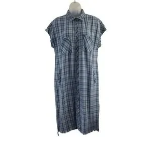 Billy T blue plaid short sleeve shirt dress, womens size Medium.