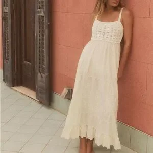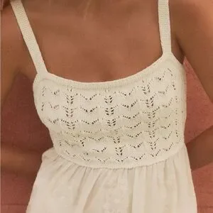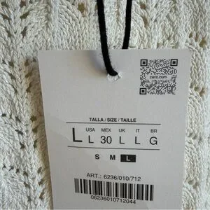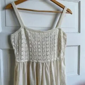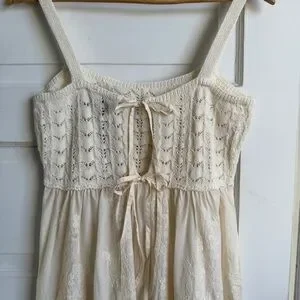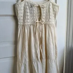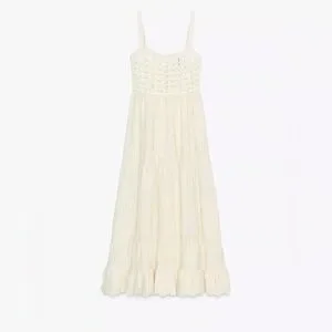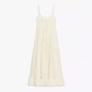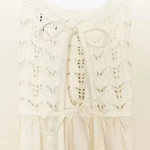 Zara Contrasting Embroidered Knit Dress Cotton Blend Tie Back NWT L Cottagecore