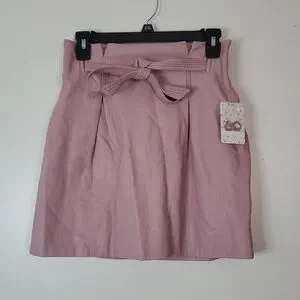 NWT Free People Payton Faux Leather Paperbag Mini Skirt Size 4 Mauve Swoon