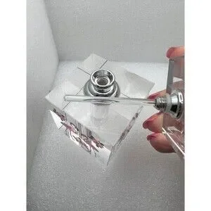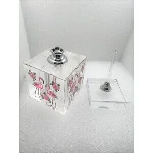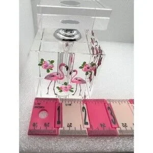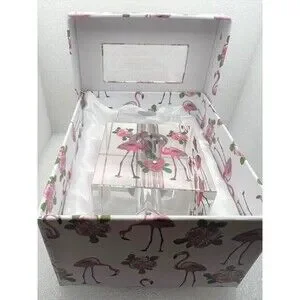 This listing is for a beautiful crystal perfume bottle. Very Heavy!! Two sides are hand painted with flamingos and embellished with small crystal stones. Bottle is 3.57 inches tall and 2.36 inches wide.