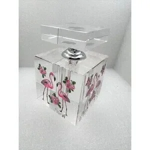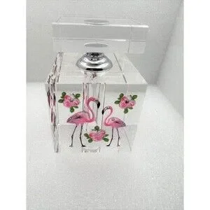 Beautiful Crystal Perfume Bottle with Hand Painted Flamingos
