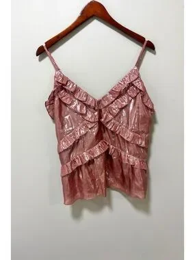 Rebecca Taylor rose pink silk blend ruffled cami top as seen on Georgia Miller (Brianne Howey) in Ginny and Georgia, season 1 episode 1, “Pilot”