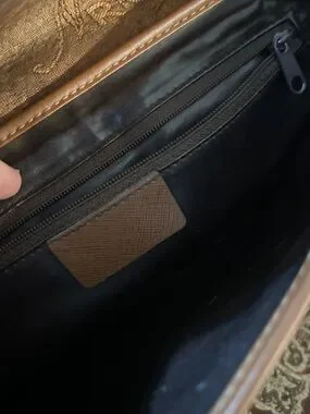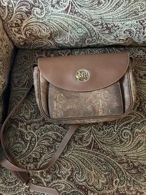 Vintage Nina Ricci Brown Monogram Crossbody with Gold-Tone Medallion