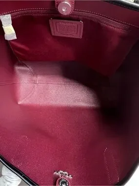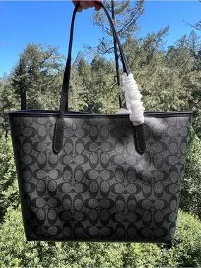 Keywords: Coach City Tote, F5696, signature C, graphite black, coated canvas, leather trim, large tote, shoulder bag, top zip, silver hardware, double straps, structured base, women’s handbag, logo tag, NWT