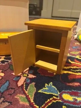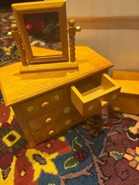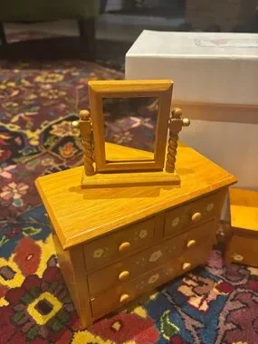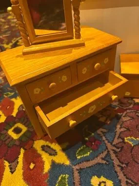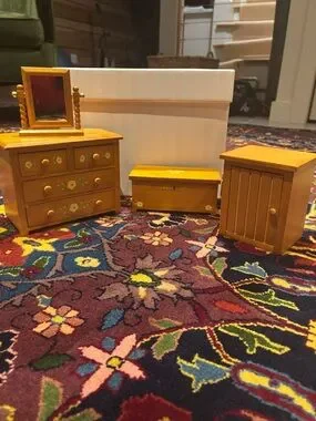 Good condition! The door knob sometimes falls off but slots back in easily! Dollhouse set