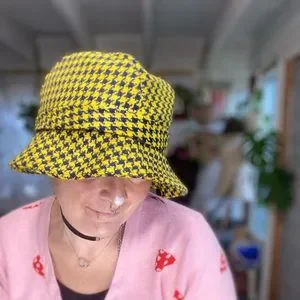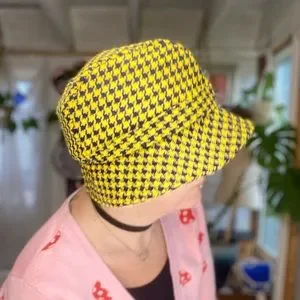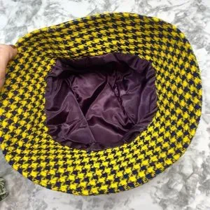 Vintage Preppy Trendy Yellow & Purple Houndstooth Print Reto Bucket Hat