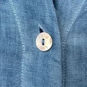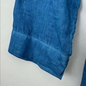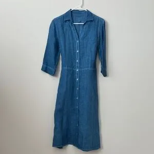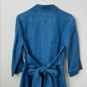 120% Lino 100% Linen Blue Button Front Tie Waist Midi Shirt Dress Size: 42