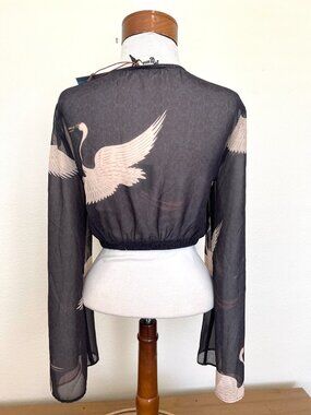 NWT "Show Me Your Mumu" - Crop Top - Black Sheer White Crane - Size Small
