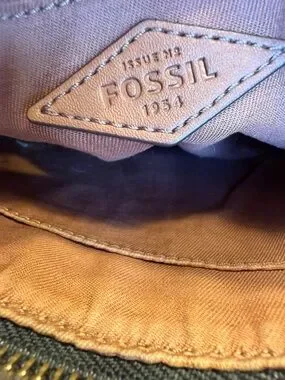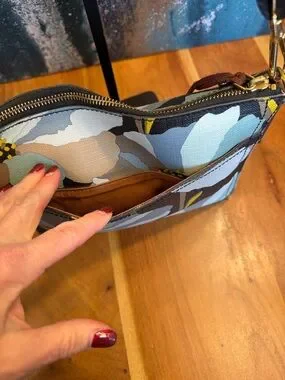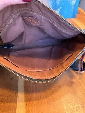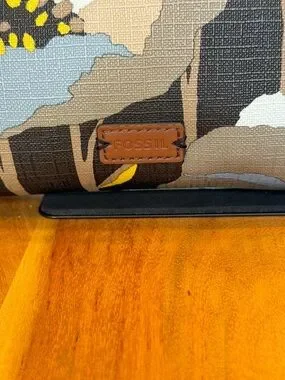 Fossil Boho Floral Coated Canvas Crossbody Bag Brown/Blue Gold (GUC)