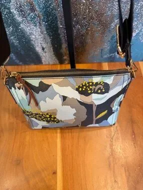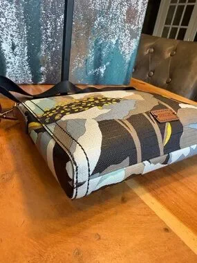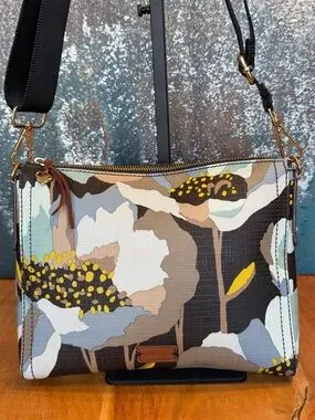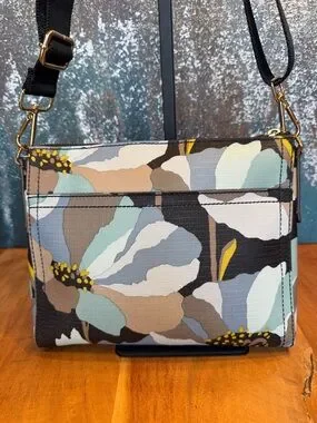 Fossil floral crossbody bag in a neutral earthy palette with oversized abstract blooms—perfect everyday statement piece with a relaxed boho vibe and lightweight feel.