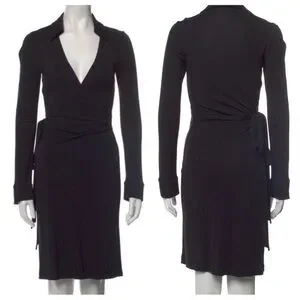 Diane Von Furstenburg New Jeanne Two Black Crepe Wrap Tie Plunge Dress Sz Xs-Sm