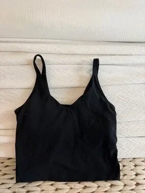 Cropped tank top with scoop neckline. Thin shoulder straps for a sleek fit. Center front lululemon logo. Smooth, stretchy athletic fabric.
