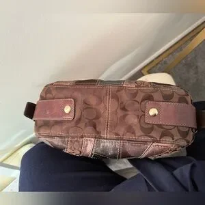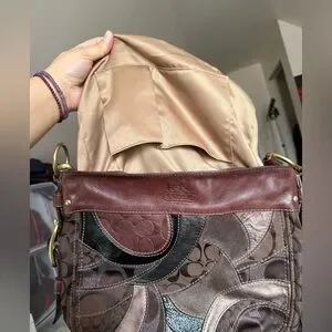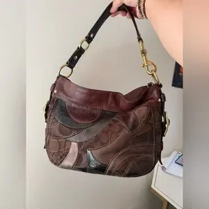 Coach Zoe Patchwork Leather Hobo Shoulder Bag in Brown Suede and Leather