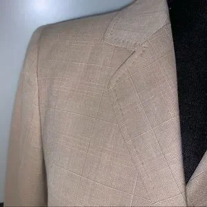 Two pieces classic suit blazer and pants in this Taupe/Beige Pattern Colour