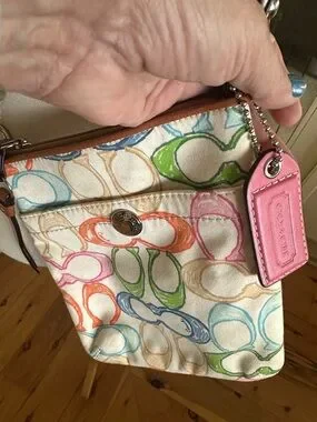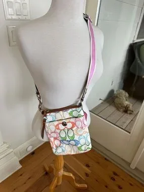 Multicolor Signature Print vintage Coach Crossbody Bag - Pink Strap adjustable
