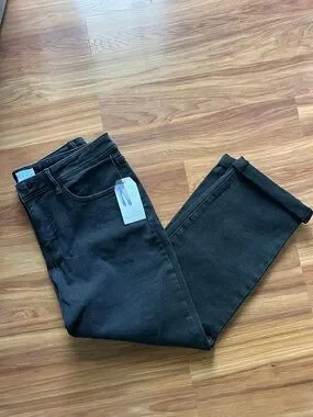 Classic black boyfriend jeans by Time and Tru. Straight relaxed fit with cuffed hems. Simple five-pocket style. Versatile everyday piece.