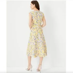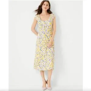 Ann Taylor Yellow Lemon Print Maxi Dress with Blue Leaves