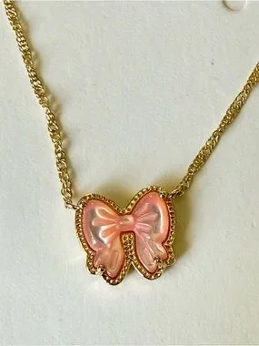 Kendra Scott Bow Necklace pink/ Gold tone 16”