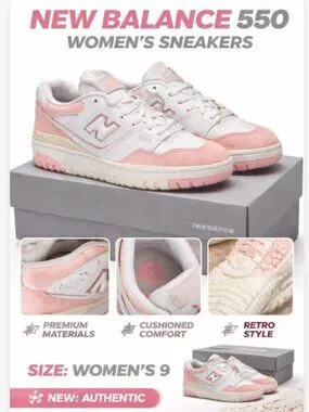New Balance 550 White Pink Women’s Sneakers Size 9 Retro Leather Shoes New