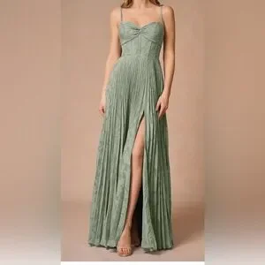 AZAZIE Akiko Pleated Maxi Formal Dress | Pistachio Green | NWT | Size 14