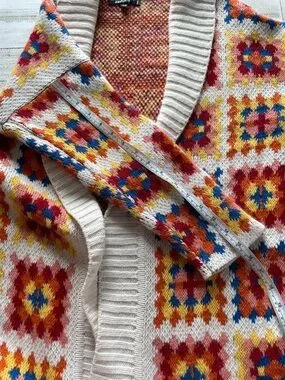Simons Multicolor Knit Cardigan with Fringe Trim