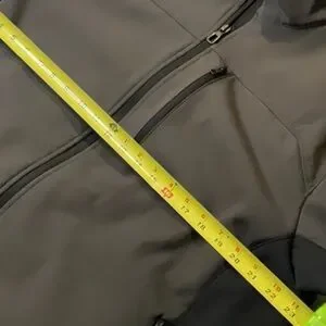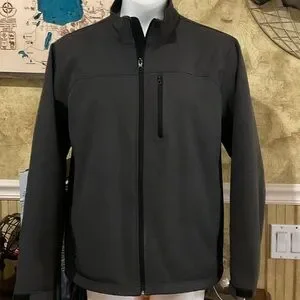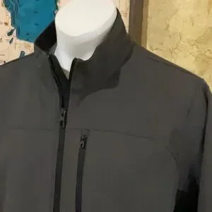 Sleek and modern softshell jacket. Features a zippered chest pocket. Ideal for layering. Couple spots on sleeve. Discoloration to back. Accepting offers, otherwise great warm jacket. No holes or tears. Sold ASIS.
