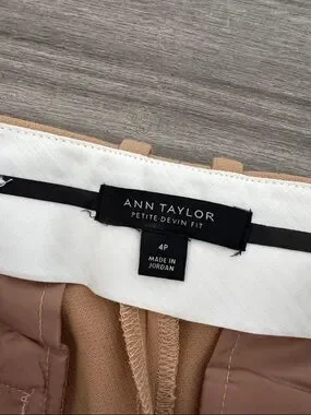Ann Taylor 4 petite dress pants trousers camel tan Devin fit work wear business