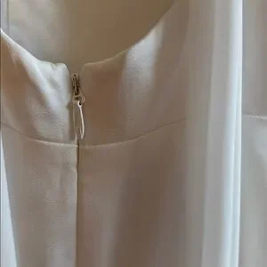 Chic halter neckline with a fitted bodice. High-low chiffon skirt adds soft movement. Minimal, modern silhouette for formal events.