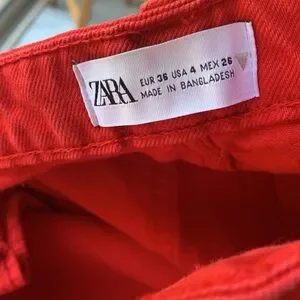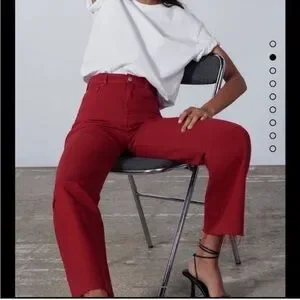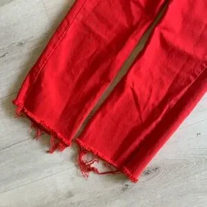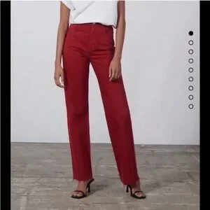 Zara The 90's Full Length Jeans Red Size 4 buttons fly raw ham