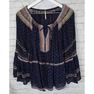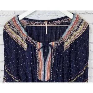 FREE PEOPLE Talia Embroidered Blouse Colorful Boho Oversized Size Medium Women’s