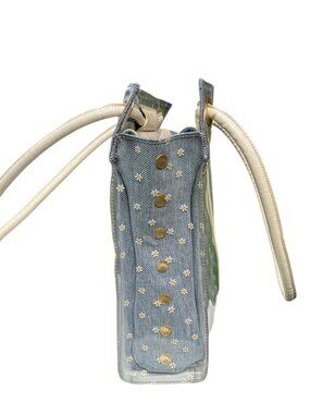 Hammitt Benjamin style tote in a daisy-print denim with clear side panels and leather trim. Perfect for spring and summer.