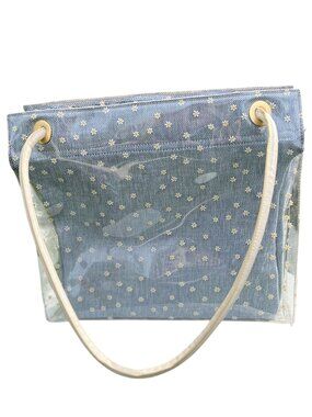 Hammitt Benjamin Style Tote Daisy Denim Clear Panels Leather Trim Large Bag