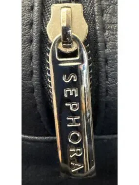 This compact Sephora makeup bag is designed for organization and easy portability. Features a secure zipper and side handle for convenience.