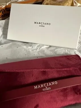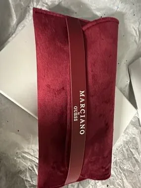 Marciano by GUESS velvet jewelry box in deep berry color. Soft velvet exterior with branded gold foil logo. Elegant and gift-ready. Never use