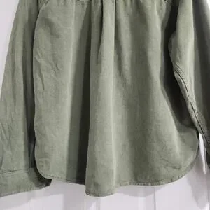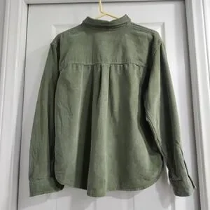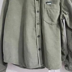 Classic olive button-down shirt. Perfect for casual outings. Soft and comfortable fabric.