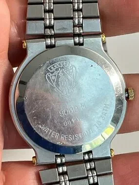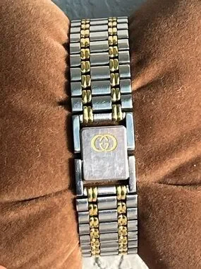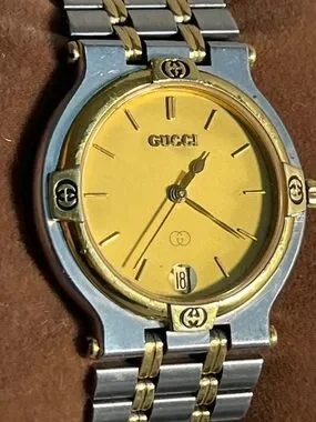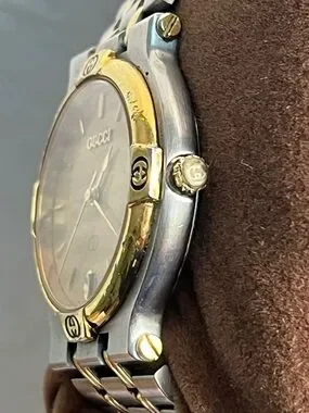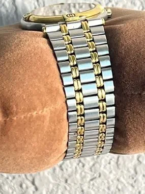 Gucci 9000M men's wristwatch dual tone gold dial.