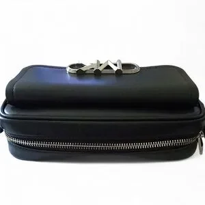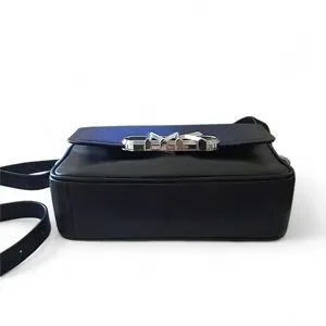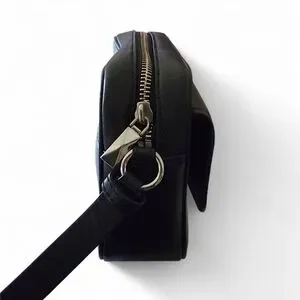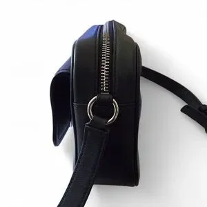 Smooth black leather with polished silver-tone hardware
