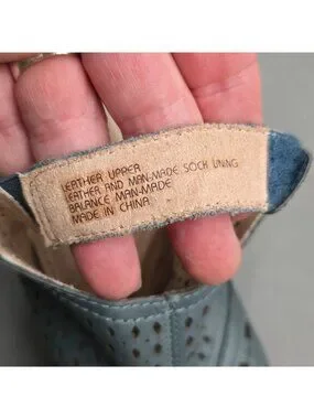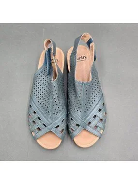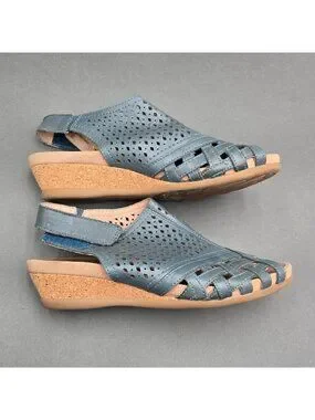 Earth Pisa Galli Blue Leather Wedge Sandals Size 7 Perforated Slingback
