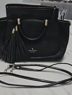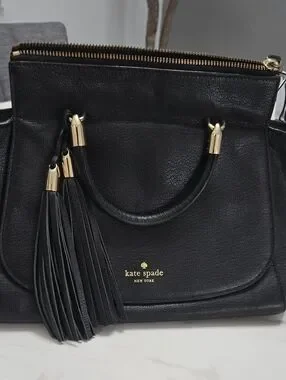 kate spade Black Leather Satchel with Gold Hardware and Tassel