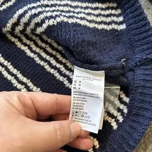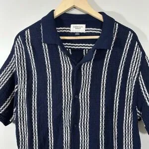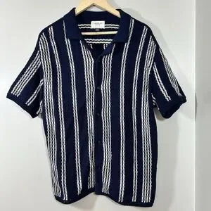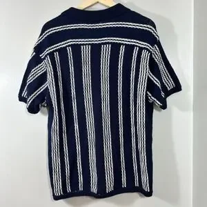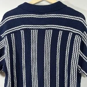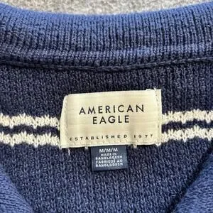 American Eagle Sweater Polo Shirt Men's Medium Blue Crochet Button Through