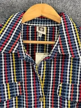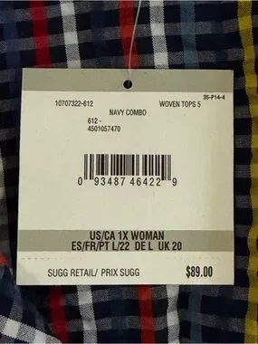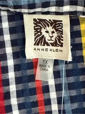 Anne Klein Womens Textured Multicolor Striped Button Up Top 3/4 Sleeve Size 1X
