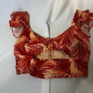 INC International Concepts 2 Piece Set XL Tropical Print Crop Top & Pants Orange