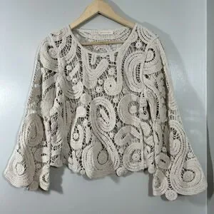 SOLITAIRE Crochet Lace Bell Sleeve Top Cream Knit Festival Boho Beach Hippie Large